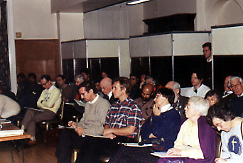 Previous Image Marian Franz (USA), Dirk Panhuis (Belgium) Next Image Another Picture of the Plenary Session Image Sixth International Conference on War Tax Resistance and Peace Tax Campaigns - Hoddesdon, the United Kingdom 1996
